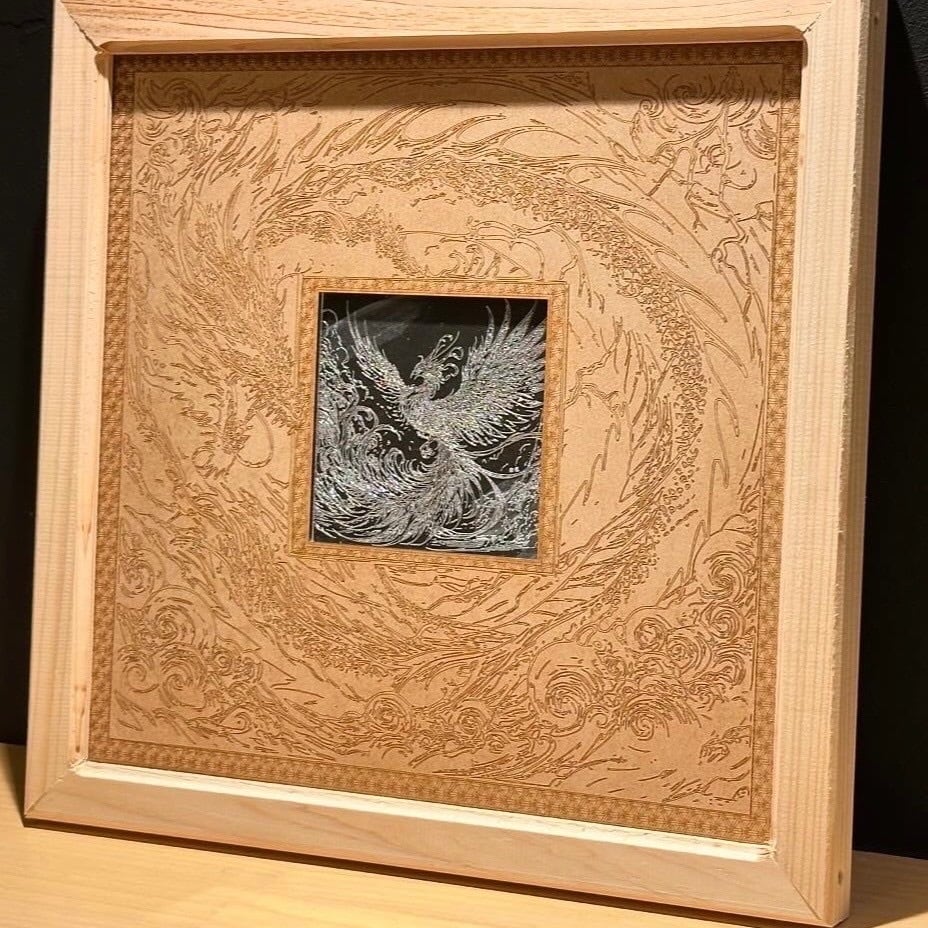 作品名 『鳳凰』ガラス彫刻 サイズ:250×250(mm) 伝説の鳥、鳳凰をテーマにした幻想的なガラス彫刻です。見る人を魅了する美しいデザインは、まるで空を舞うかのような神秘的な豊かさを表現しており、インテリアに特別な雰囲気をもたらします。 この『鳳凰』は、職人の技によって繊細に彫られた羽根や流れるような姿を通じて、再生と繁栄の象徴である鳳凰の持つ神秘を感じさせます。どの角度からも楽しめる作品であり、贈り物としても喜ばれる逸品です。 独自の技術で仕上げられたこの作品は、毎日の生活に華やかさを加え、美しい瞬間を演出します。見つめるたびに新たな発見があり、ずっと愛用していただけることでしょう。 『鳳凰』は、あなたの空間に力強いエネルギーを注ぎ込み、心に残る感動をもたらします。是非、その魅力を体感してみてください。 ※取扱いにはご注意ください。万が一故障が発生した場合は速やかにお問い合わせください。