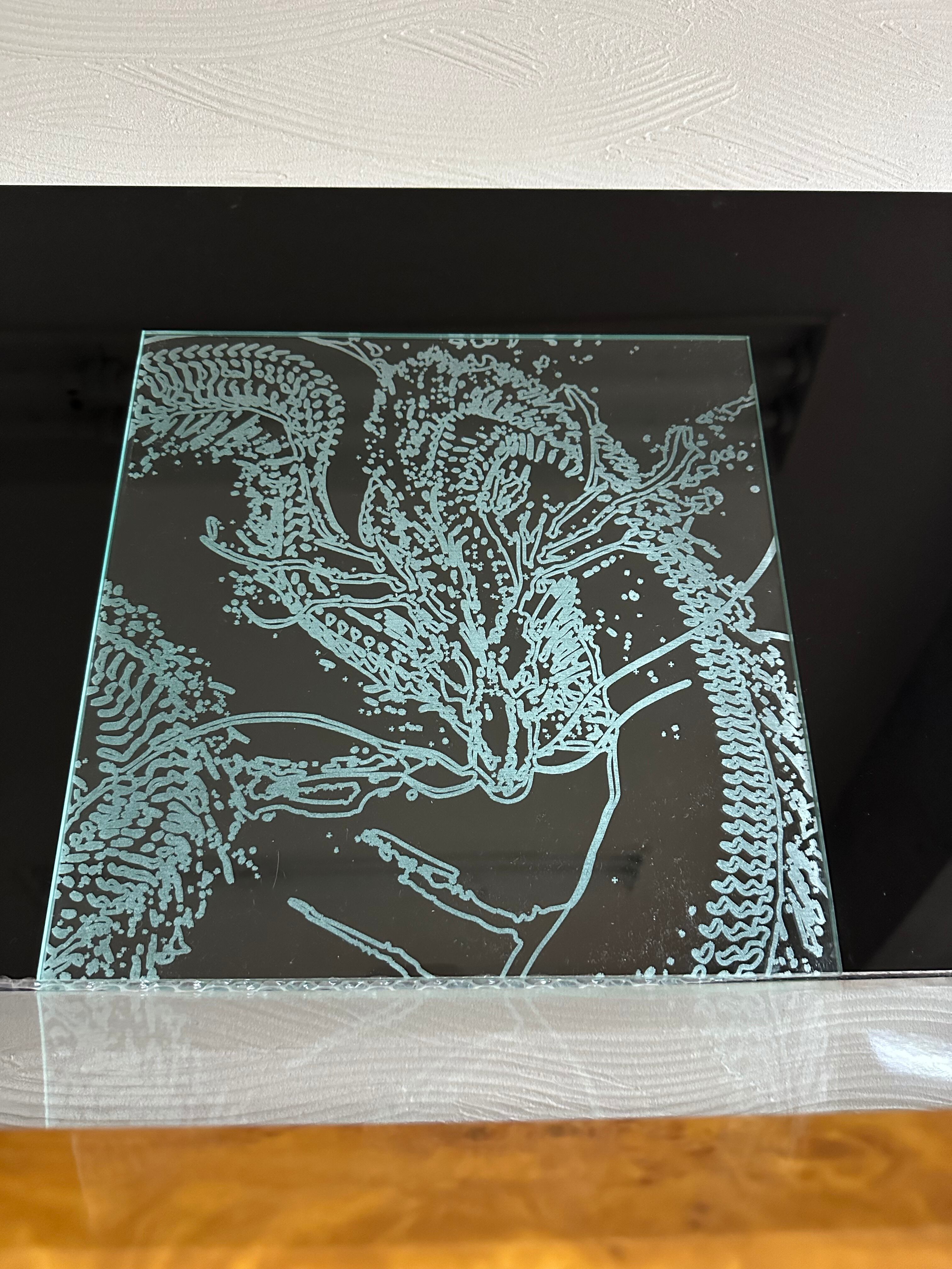 緻密なレーザー彫刻技術によって、立体的な龍が飛翔する美しい作品です。